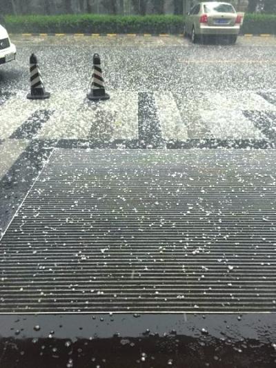 昨晚7点多,王女士在去机场的路上遇到冰雹,在离机场5公里左右的路段冰雹最大,“比鸽子蛋还大,和雨夹杂在一起砸在车上,还好车没问题”。网友@柠-檬茶称,昨晚6点多,朝阳区望京京顺东街也下起冰雹,“下得很猛很急”。