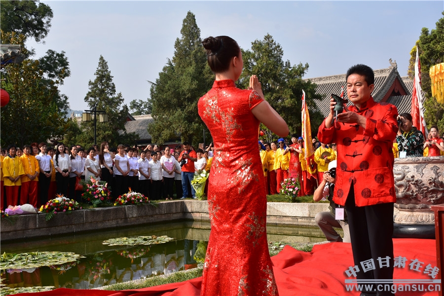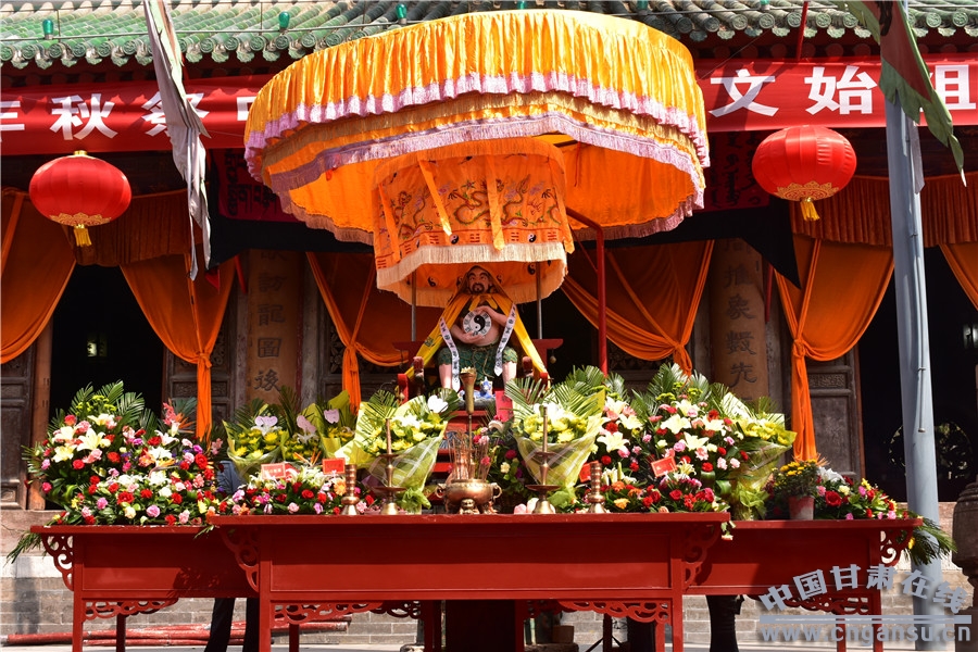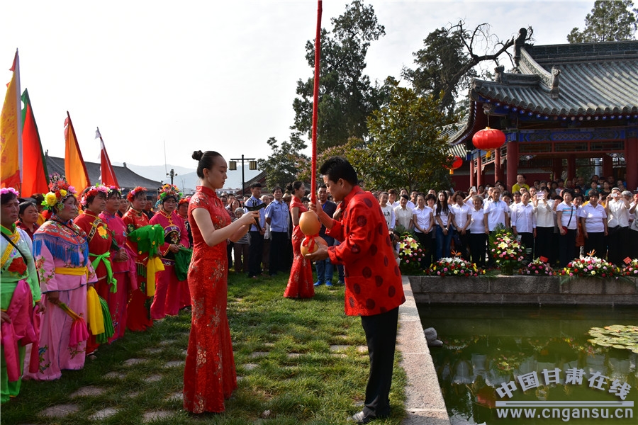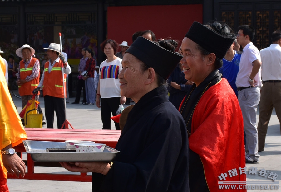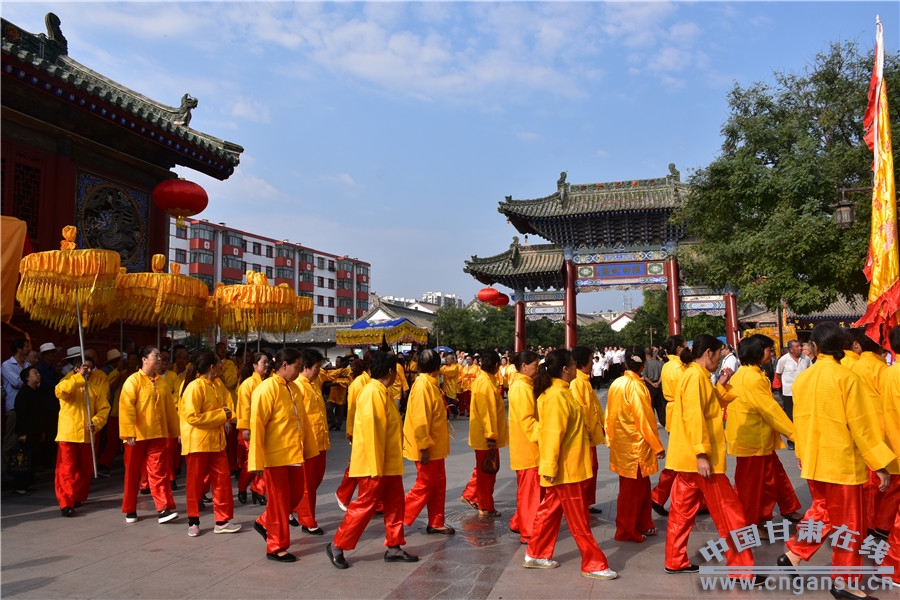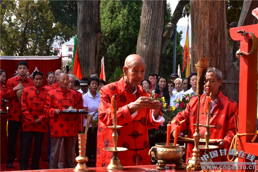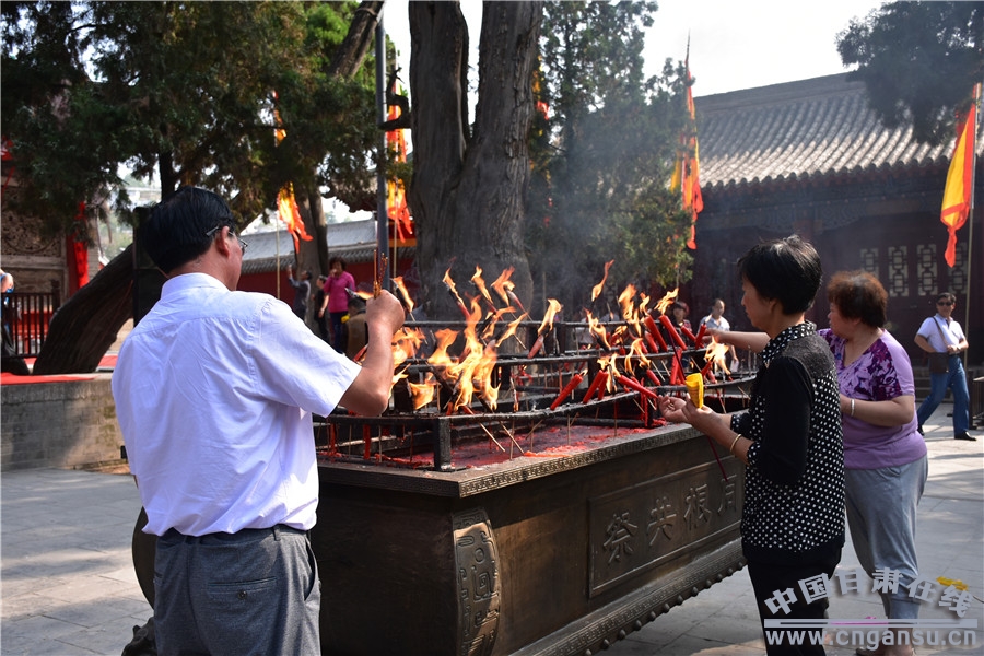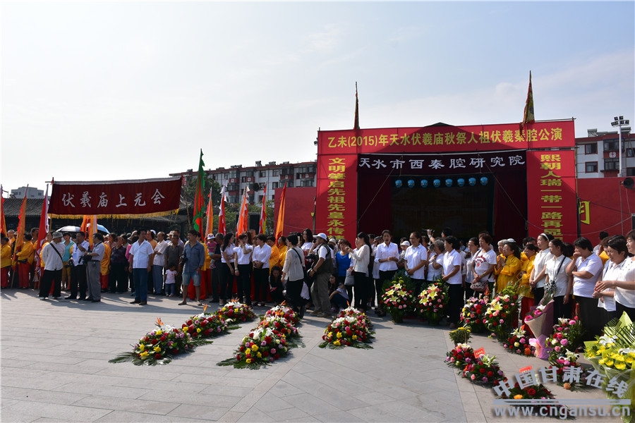 中国甘肃在线讯:2015年8月31日(农历七月十八日)上午9时,伏羲庙内苍松挺拔,翠柏含青,旗幡招展,古乐悠悠,一派古朴典雅,肃穆庄严。备受关注的“乙末(2015)年秋祭中华民族人文始祖太昊伏羲氏典礼”在伏羲庙隆重举。广大市民相聚伏羲庙内,虔诚祭祀人文始祖伏羲,共同祈福太昊,保佑家庭幸福,中华繁荣昌盛。