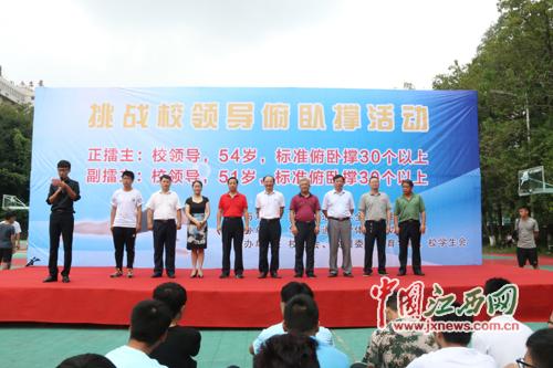 近日,江西各高校陆续迎来大一新生报到。9月4日,华东交通大学迎新第一天,当天上午,该校田径场上举行的一场特殊擂台赛吸引众多新生和家长的关注,该校校领导设擂台与学校师生现场挑战俯卧撑,这一创新迎新活动获不少学生及家长点赞。