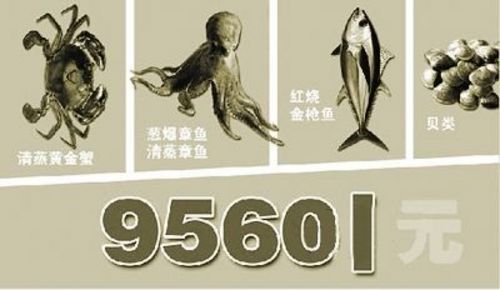 记者计算了一下,按照金枪鱼进价200元,黄金蟹进价180元,丁先生需要每种海鲜点10斤,价格才能与9560元差不多。面对如此明显的宰客现象,这家店的老板解释说由于他当时外出办事,是没有经过培训的点菜员捅出了这个大篓子,目前这家海鲜排档已经被停业整顿。
