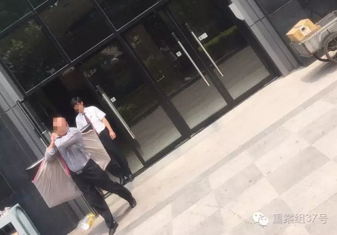 几分钟后,记者在一快递小哥的帮助下进入23楼。此时在西侧电梯口,一名约40岁的光头男子正用一布袋包裹平板电视机下楼。记者跟随其进入电梯,在电梯内,该光头男子神情紧张,并刻意回避重案组37号探员眼神。男子出电梯后扛着电视机顺利离开公寓。