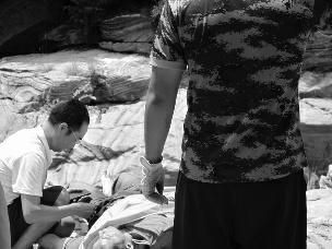 杨先生说,眼看两人滑入石缝,一名较胖的男子赶紧站在一处石块上去拉。“他俩一上一下卡在石缝里,女的在下面,男的在上面,应该是两人都用脚和手支在石缝两边,这才没有掉下去。”杨先生说,而当站在石块上的男子去拉时,竟也被带入石缝内,三人一起向下滑去。