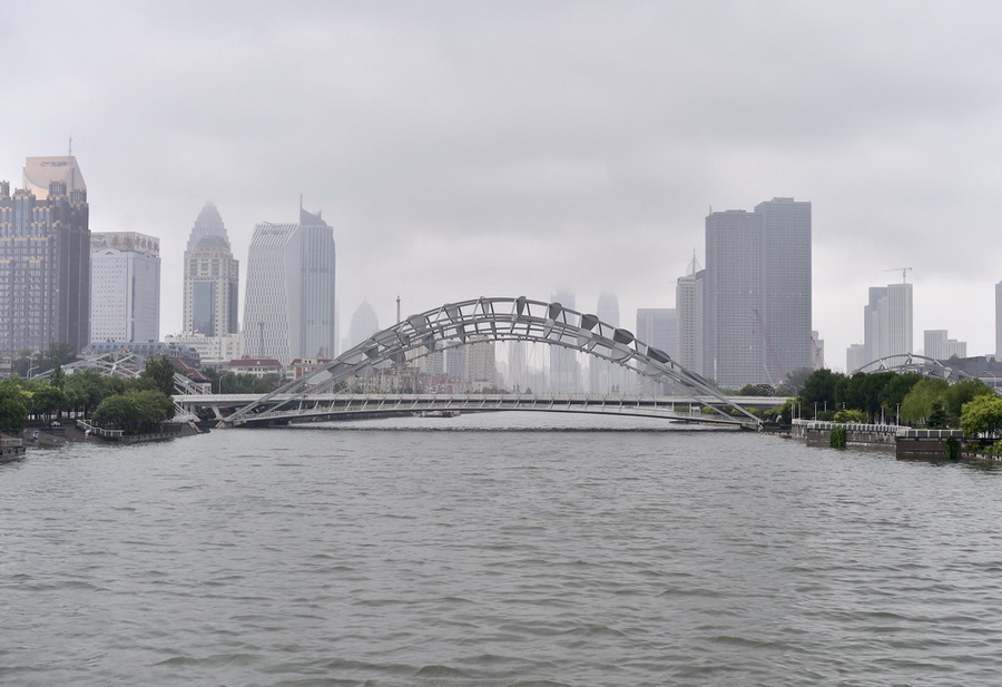天津海河奉化桥附近的水面(7月20日摄)。记者从天津市水务局了解到最新消息,受大暴雨影响,截至7月20日上午10时,海河天津市区段水位达到1.9米,超正常值0.4米。新华社记者 岳月伟 摄
