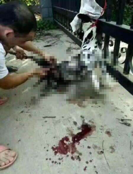 8月21日,微博简介为河北石家庄某动物保护志愿者组织的@石家庄欢喜流浪动物救助小院 发帖称,石家庄鹿泉区一男子在某短视频应用平台上发布了活剖孕狗取小狗、杀死母狗并炖肉吃的血腥视频;动保人士找上门欲劝阻男子,但被对方打伤,男子行凶后逃逸。22日,鹿泉区公安分局大河镇派出所工作人员向澎湃新闻表示,目前警方已对打人事件立案调查。