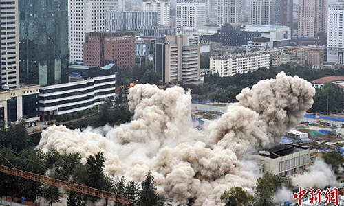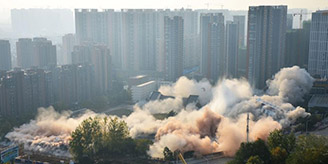 据了解,在拟爆破的19栋楼中,2至7号楼由于临近解放大道,为了确保安全,将采取纵向爆破的方式,即起爆后楼房将原地垮塌,其余楼房将采取定向倒塌的方式,倾倒在空地上。