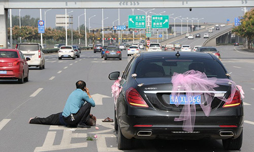 10月16日上午11点30分左右,百万奔驰婚车撞老人,据奔驰车主介绍,当时他正驾车正常行驶,突然发现了正在逆行的骑三轮车的老汉。于是他紧急刹车,可是已经太晚。两车迎头相撞,三轮车飞出了有近10米远。