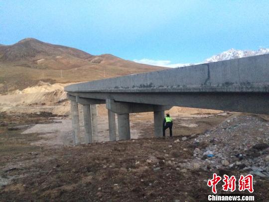 图为路政人员排查杂多县城周边的公路桥梁 曲扎江措 摄