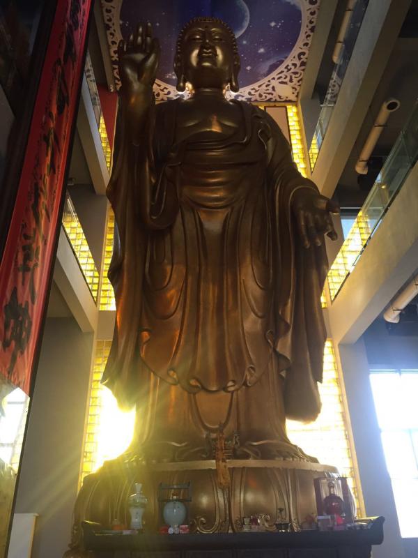 11月4日,记者曾以商户的身份进入环球金融广场招商中心3楼,即安徽省振大投资发展有限公司的办公地点发现,有一座高约七八米的金色佛像屹立在办公室的正门口,很是显眼,而办公室也只有两位文员,并表示对佛像具体的情况并不知情。