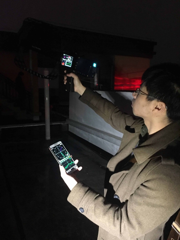 经过两天的锁定,无线电管理人员将范围缩小到芜湖市某小区,但黑广播安装在哪一栋楼哪间房子里,却是最难定位的。记者在现场看到,监测人员通过一个形状类似弓弩的“手持式监测测向机”,对每个区域进行信号源锁定。最终,监测人员在34层顶楼电梯房的房顶上找到了这套发射装置。