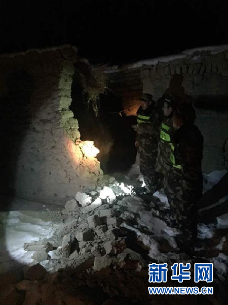 地震发生后,驻守当地的新疆公安边防官兵迅速出动,协助驻地党委、政府救灾和排查灾情。截至26日凌晨2时许,边防官兵共排查房屋49间,走访村民100余户300余人次。