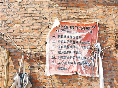 贾科长说,从质监角度来看,再生纤维的产品标准主要看原材料来源,原材料不能有病毒或者细菌。据他介绍,在东留曹村现场的检查中,并没有发现疫区或者医用纤维等违禁物。在销售时,只要注明生产产地,销往去处,并且标明禁止生活用品使用,这样的产品是符合规定的。他认为,说东留曹村生产的是黑心棉是不专业的,更不应该把这里定义为黑心棉原材料基地。