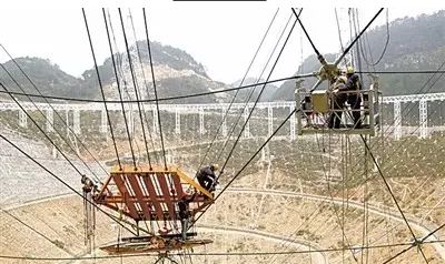 轻型索支撑馈源舱的方案,则将馈源舱减重到30吨,远远低于阿雷西博望远镜的900吨,再加上并联机器人的使用,实现了望远镜接收机的高精度指向跟踪……
