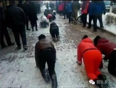 对此,微信公号“敦化发布”消息称,2016年12月2日,一则关于敦化市新源居南侧道路多人由西向东跪地爬行的图片和视频在微信朋友圈内大量传播,造成了极其恶劣的影响。