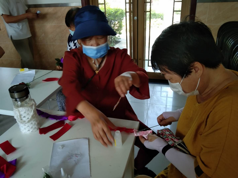 丝带花手工制作活动增加了残疾人之间的情感交流,增进了邻里情意,也培养了残疾人的动手动脑能力,营造了和谐的社区氛围。