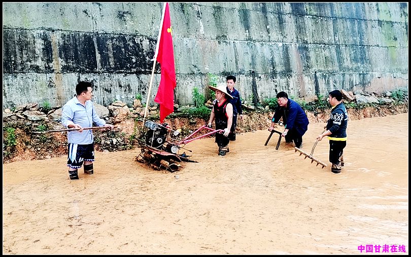 5月12日,广西融水苗族自治县高培村“两委”干部和驻村工作队组成8人的“红色耕耘小队”,开着翻耕机、扛着犁耙,对闲置土地进行除草、起垄、翻土、引水、放养鱼苗。5月19日,经过8天挥汗如雨的日夜奋战,成功耕耘出360多平方米的“山泉水禾花鱼养殖试验田”。