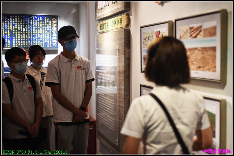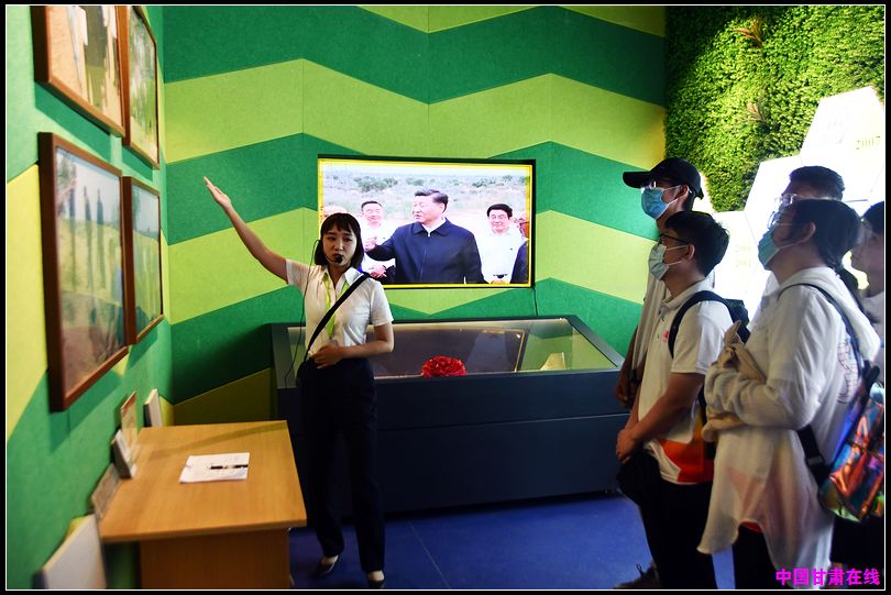 7月21日上午调研团抵达古浪县八步沙两山实践创新基地参观学习,在工作人员的带领下对八步沙的治理历史开展学习,深入了解生态环境建设对当地经济生态和文化产生的巨大影响,学习“两山精神”,深刻领略“绿水青山就是金山银山”含义。讲解员告诉实践队员:八十年代初,由于沙化加剧,导致沙漠以每年7.5米的速度向前挺进,此地便成为了沙暴肆虐风沙口,墙摧屋塌,畜死人伤,颗粒无收,百姓叫苦不堪。