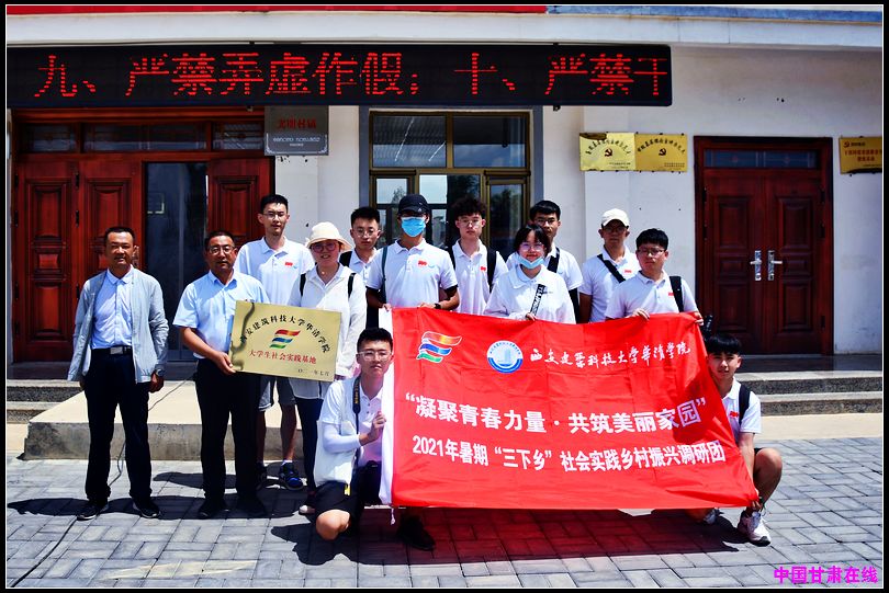 采访完张书记后,我们举行了挂牌仪式,在富民新村的门前挂上了西安建筑科技大学华清学院社会实践基地的牌子。表明了实践小组会和古浪人民一起夺取脱贫攻坚收官战的全面胜利,为加快建设幸福美好的新甘肃贡献自己的一份力量。