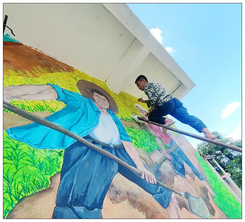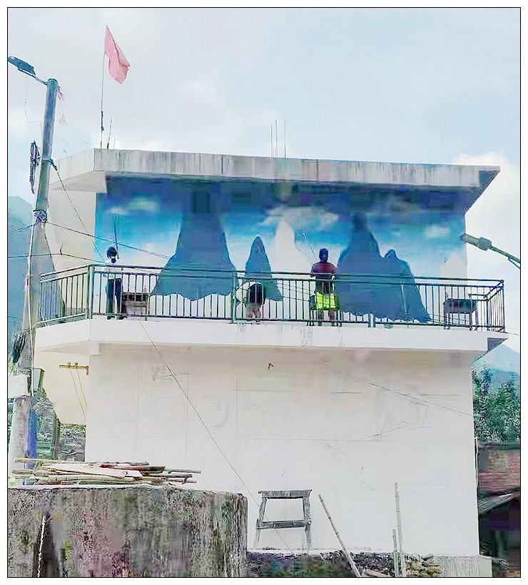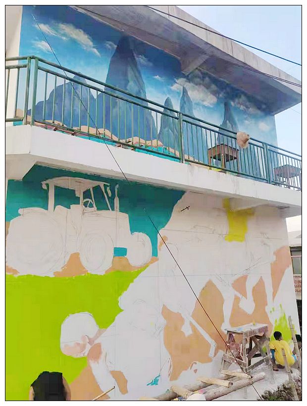 据悉,在暑假期间,广西融水苗族自治县大浪镇高培村党总支部和高培村下寨屯支部的积极组织引导下,贾亮民、贾晓雪、龙连美等6名大浪籍大学生们利用自身绘画艺术特长,前后将近2个多月,义务为高培村下寨屯文化综合楼闲空墙壁添上栩栩如生的墙画,为苗山乡村振兴加油鼓劲。