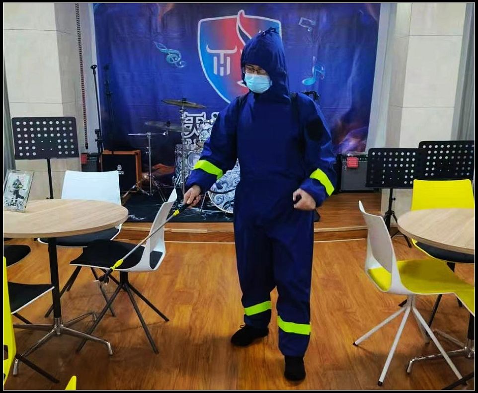 加强物资储备,消杀不留死角。大队在前期物资储备的基础上,又采购84消毒液、75%医用酒精、医用防护服等物资。每天对楼道、洗漱间、宿舍、办公室、会议室、餐厅、后厨、岗亭、垃圾收集点(桶)等为消毒重点。在消毒中,消毒人员秉持认真负责的态度,带头消毒,消毒做到认真、仔细,绝不留下一个死角,确保消毒到位,让全体指战员在安全、健康、卫生的环境中开展各项工作。此外,通过为每名指战员定期配发口罩、酒精等防疫物资,为每辆执勤车辆配备口罩,出警归队后对车辆和人员采取全身洗消,有效降低了指战员们在营区以外感染几率。