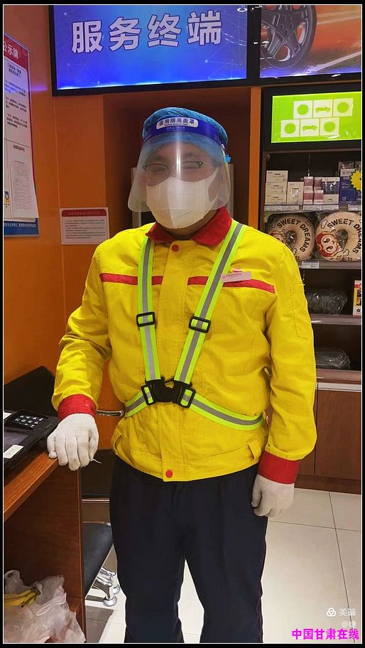 因为疫情,来加油的车辆骤减,今年58岁的王兴平每天带着大家清洁现场,检查设备,他宗说:“弄干净了,我们才安全,顾客也更放心!”他虽然是站上年龄最大的员工,却毫不犹豫地坚持留站:“我是一辈子的石油老职工了,这个时候我必须要留在站上!”他也总是安慰同事:“没事,总会过去地!”