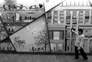 昨天,在即将开通的地铁14号线大望路站,“朝九晚五”壁画亮相,画面讲述着上班族的办公室故事,表达了日常工作的喜怒哀乐和对生活的憧憬,和工作的环境非常契合。