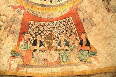 除了表现墓主人并坐宴饮的场景外,在墓主人夫妇周围,还绘有二十四孝图中的7幅。邢福来说,在宋元时期,民间对孝道极其重视,在我省已发现过几处壁画墓,墓室内根据地方大小,选用了部分二十四孝图。