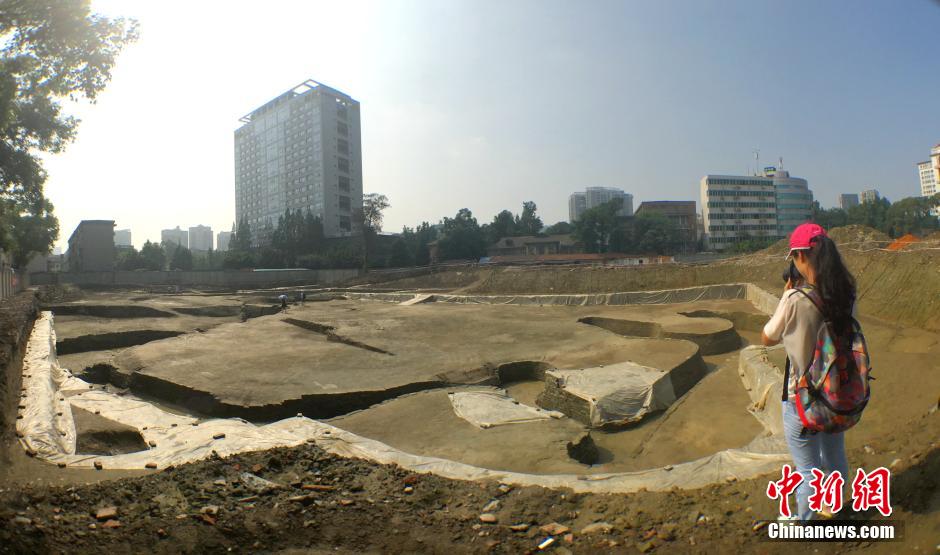 7月中旬,成都城区通锦路一建设工地施工过程中,发现修建于盛唐时期的人工园林遗址。考古人员共清理了墓葬18座、水井1口、灰坑8个、沟渠3条、池塘1座,同时还出土大量生活用陶瓷器和少量与佛教有关的石刻造像及建筑构件。通过发掘,考古人员确认,这是一处丰富的汉代至明代的文化遗存,可能与万佛寺有一定关联。 中新社发 刘忠俊 摄