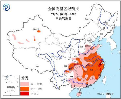中新网7月23日电据中央气象台消息,中央气象台7月23日18时继续发布高温橙色预警:预计24日白天,华北东南部、黄淮、江淮、江汉、陕西南部、四川盆地东部、重庆、贵州北部和东部、江南、华南等地有35~37℃的高温天气...