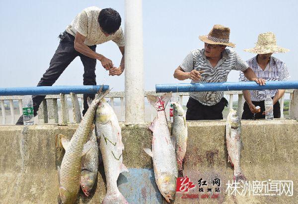 昨日,“挂鱼者”把钩上来的大鱼放在一起(记者 谢慧 摄) 昨日,数十名居民翻越大坝护栏钩鱼(记者 谢慧 摄)株洲晚报4月29日讯(记者 徐涛)4月1日至6月30日是湘江禁渔期,但4月初至今,每天有200多人翻过围栏,...