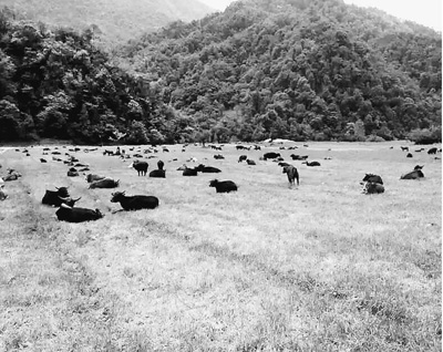 明光林场和明光矿业公司合作经营大竹坝养殖区,独龙牛懒洋洋地晒着太阳,一派和谐景象。张庆留摄  中国甘肃在线1月30日讯 云南腾冲沙坝林场,3年前职工纷纷想“逃离”,如今反过来了——其他林场的职工想调过来...