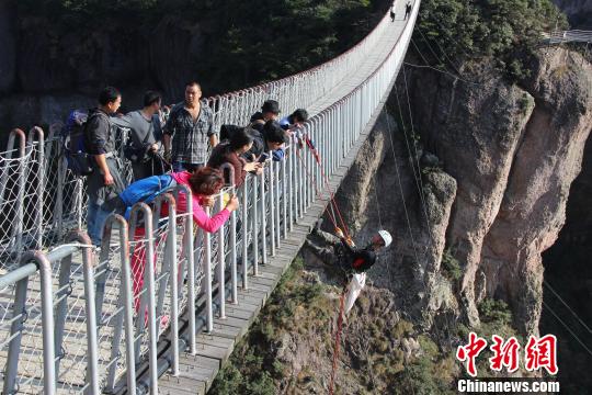 • 浙江神仙居景区悬崖上出现“蜘蛛侠”