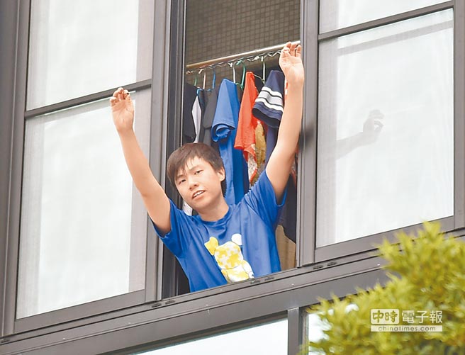 被挟持的大学男生,22日下午在3楼窗边大声喊叫,并展示林嫌子弹,表示疑似是假的。图片来自中时电子报海外网12月23日电 据中时电子报报道,21日晚间遭挟持的台湾张姓大学男生与歹徒共处21小时,他年仅23岁,沉着与嫌...