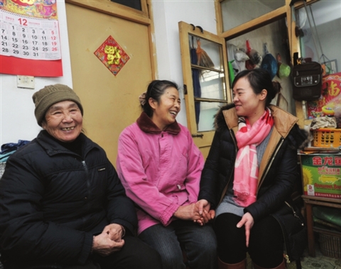 昨天上午,汪润兰和老母亲在家里见到了伸出援手的好心女司机陆女士(右一)。 □记者 徐志强 摄    昨天上午,汪润兰和老母亲在家里见到了伸出援手的好心女司机陆女士(右一)。 □记者 徐志...