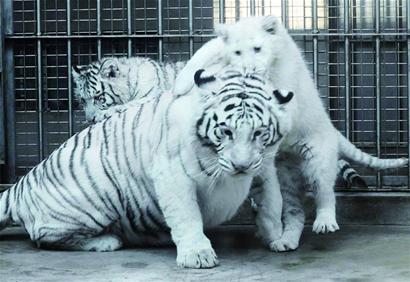 • 青岛动物园白虎生龙凤胎 通体雪白每天吃3斤肉