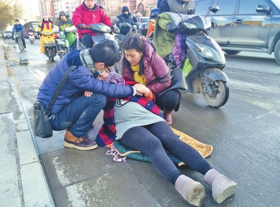 上班途中,怀孕8个月的孕妇摔倒万幸的是,经检查母子平安郑州市区多条道路结冰,有市民认为是洒水车夜间洒水所致本报讯从昨晨6点多开始,大河报96211新闻热线就不断接到市民反映,称市区多条主干道路面结冰,导致行...