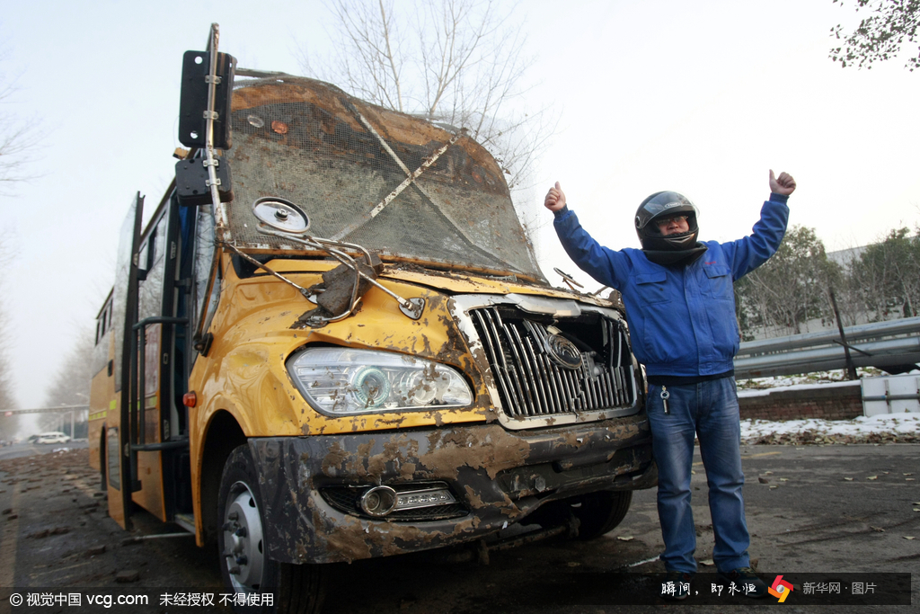 2015年11月27日,在河南郑州工业园区,一司机驾驶一辆校车在高速行驶状态下猛力撞上一面墙,顿时砖块横飞,一地狼藉,让百余围观者惊叹不已。现场检查发现校车除前脸格栅、左前大灯等处有部分受损外,整体状况良...