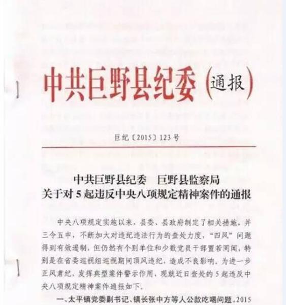 纪委的通报。澎湃新闻综合报道11月25日,齐鲁晚报官方微博@齐鲁晚报发布山东巨野县纪委、巨野县监察局关于5起违反中央八项规定精神的案件通报,山东巨野县田桥镇政府办公室主任魏衍顺因吃拿商户2个苹果未交钱被诫勉谈...
