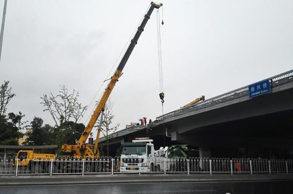 • 北京西三环一辆货车冲破护栏 车身倒扣向下