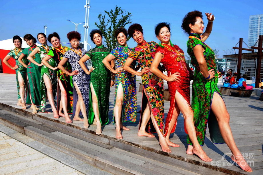 • 苏州千名旗袍爱好者水上走秀 大妈秀美腿