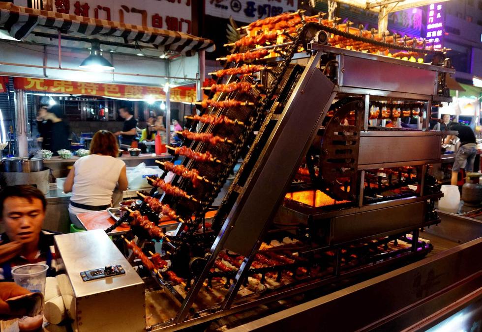 • 沈阳夜市现“烤串神机” 一次可烤100串