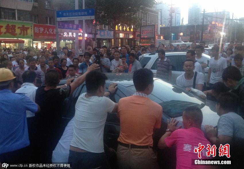 2015年8月7日,长春市东三道街与大马路交会处的金鼎名城小区公寓高层起火,随之而来的消防救援和居民的互助救火。现场群众合力移动一辆挡路的汽车,以便车辆能够顺利进出。 新文化报蒋盛松 摄 图片来源:CFP视觉中国...