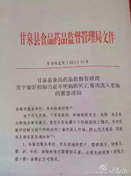 当地文件显示发现炭疽病疑似患者近日,甘泉县袁庄村陆续出现几例骡子不明原因死亡。同时,延大附院接诊来自袁庄村疑似炭疽病患者。接报后,省市领导作出重要批示,甘泉县迅速启动防控应急预案,省市专家及时前往甘...