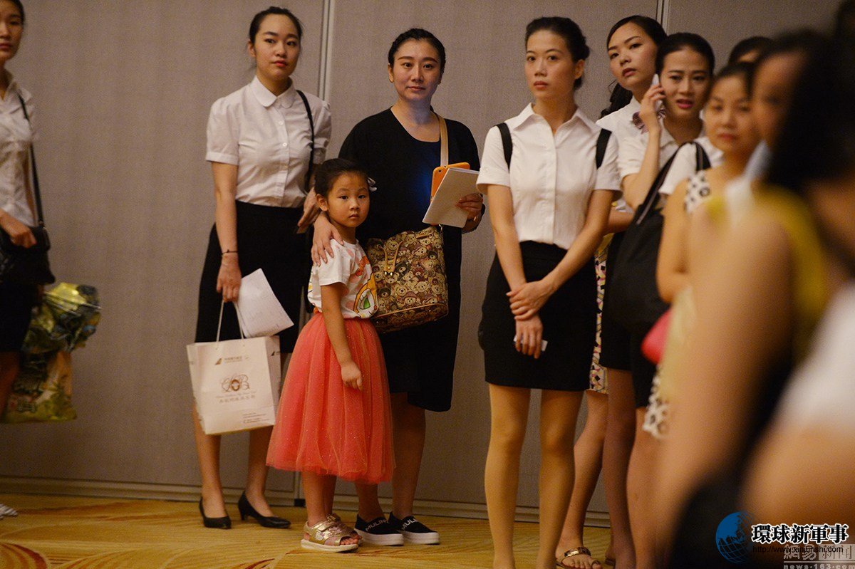 7月30日,湖北武汉,南航2015年乘务员招聘现场,今年30岁的市民黄文婷带着她的女儿,排队参加报名。...