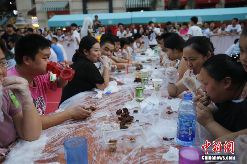 • 武汉闹市上演“啃鸭脖”大赛 吃相百出