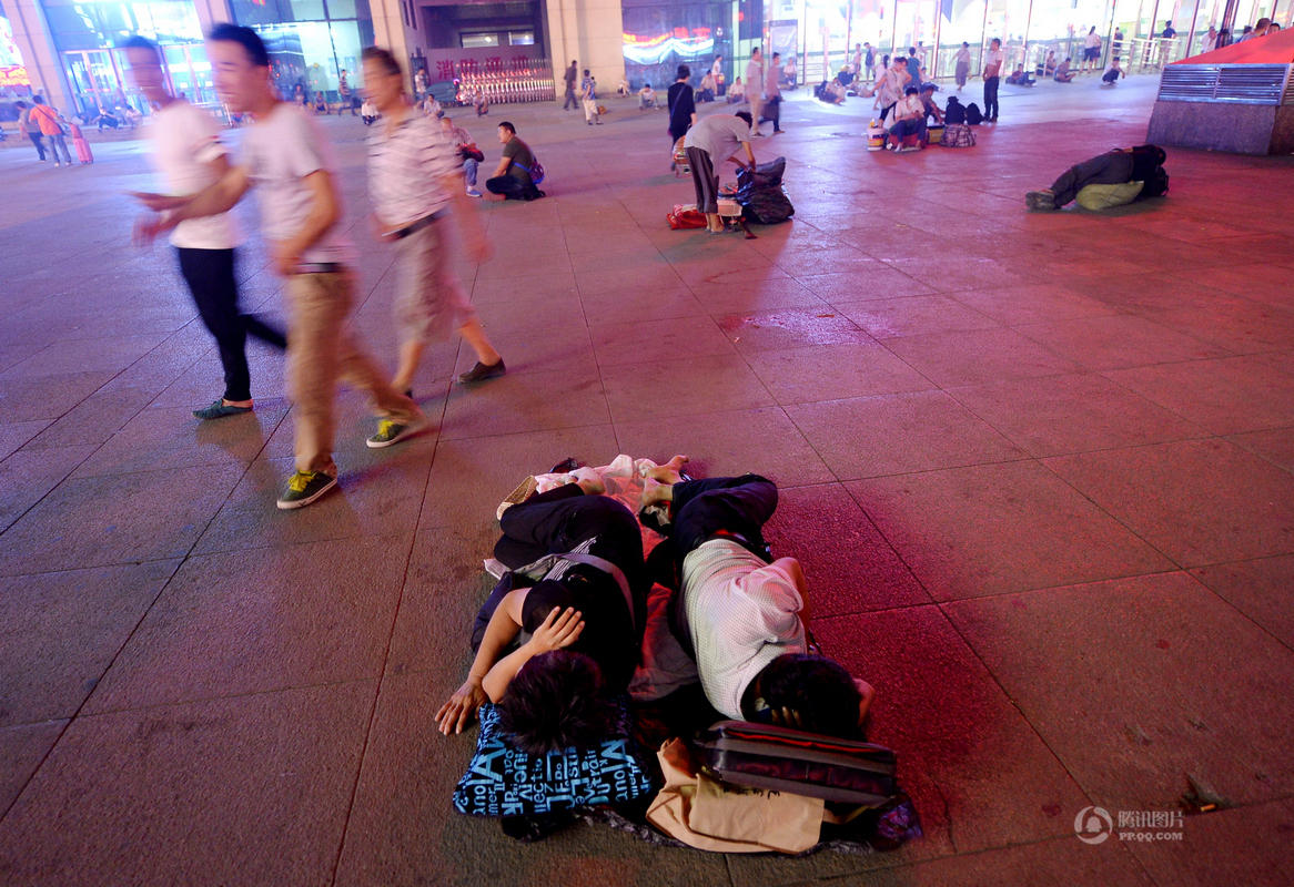 2015年7月6日,记者实地探访济南露宿街头的市民。为了省去住旅社的费用,很多人席地而睡。温陆/CFP...