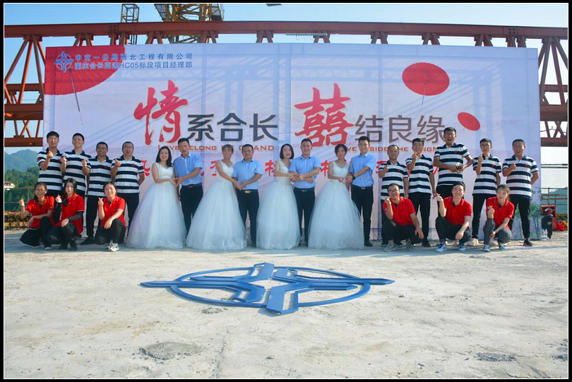 • 大桥与新人见证幸福时刻--重庆合长高速新桥大桥合龙现场举行集体婚礼