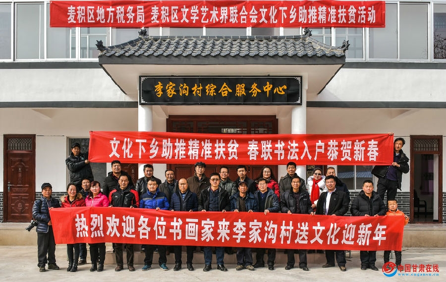春节临近,农村逐渐显现的年味越来越浓。日前,天水市麦积区地税局帮扶的元龙镇李家沟村村民迎来了一批特殊的客人——由26名著名书法家、美术家、摄影家组成的送文化进村入户贺新春小分队。...