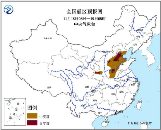 据中央气象台网站消息,中央气象台11月18日06时继续发布霾黄色预警:预计,18日08时至19日08时,北京中南部、天津、河北中南部、山东西北部、河南中北部、山西中部、陕西关中等地的部分地区有中度霾,其中北京南...