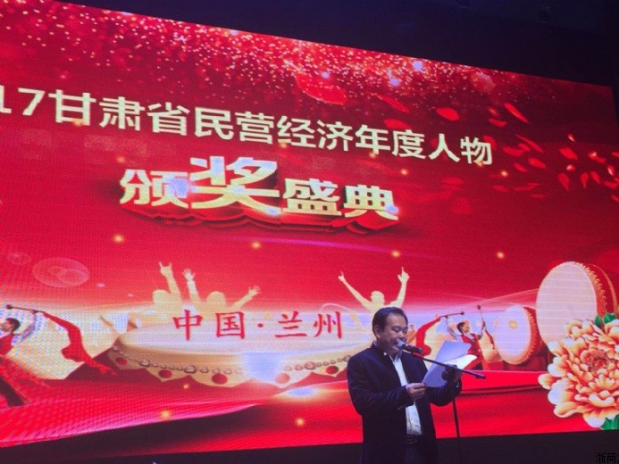 2017甘肃省民营经济年度人物颁奖盛典于2018年1月30日在金果海港国际宴会厅隆重召开,甘肃省浙商集团董事局主席、甘肃省民营企业家联合会会长、甘肃省金华商会会长钟国庆受邀参加并致贺词