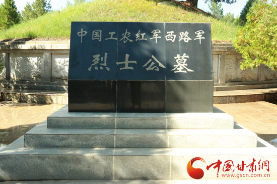 烈士公墓位于纪念碑南100米,建于1987年。幕内有一长方形墓穴,长6米,宽4米,深2米,安葬着从汪家墩、梨园口、紫疙瘩山、三道柳沟、廖泉红军坟墓中迁移而来的烈士遗骨2000余具。。本网记者 李秀清 摄